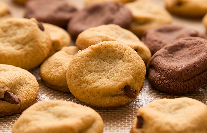 具体的には、クッキーの外側には軽くサクサクとした食感の生地を使い、内側には水分を多く含んだ、やわらかいしっとり生地が使われているのです。