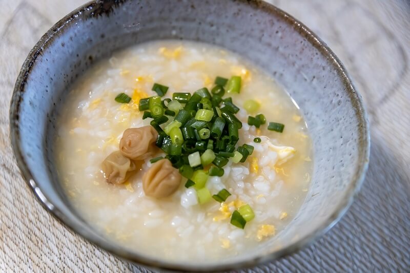 お米の粒の形がなくなるまで煮込まれたお粥は、お箸を使わなくても喉を滑り落ちていくような柔らかい質感に変わっています。